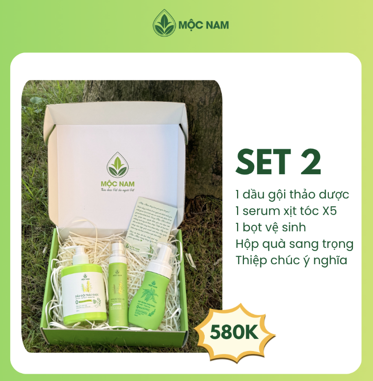 Set 2: Dầu gội thảo dược, serum xịt tóc, bọt vệ sinh