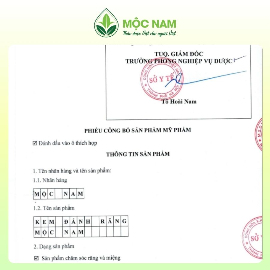 Kem đánh răng Mộc Nam là dòng sản phẩm chăm sóc răng miệng chứa các chiết xuất từ các thảo dược Việt, ứng dụng công nghệ chiết xuất CO2 siêu tới hạn giúp giữ trọn hoạt chất tinh khiết, an toàn và hiệu quả. Với công thức “6 KHÔNG”: không sulfate, không paraben, không cồn công nghiệp, không hương liệu tổng hợp, không màu tổng hợp, không fluor, sản phẩm phù hợp cho cả người lớn và trẻ nhỏ, giúp làm sạch răng miệng dịu nhẹ mà vẫn hiệu quả.