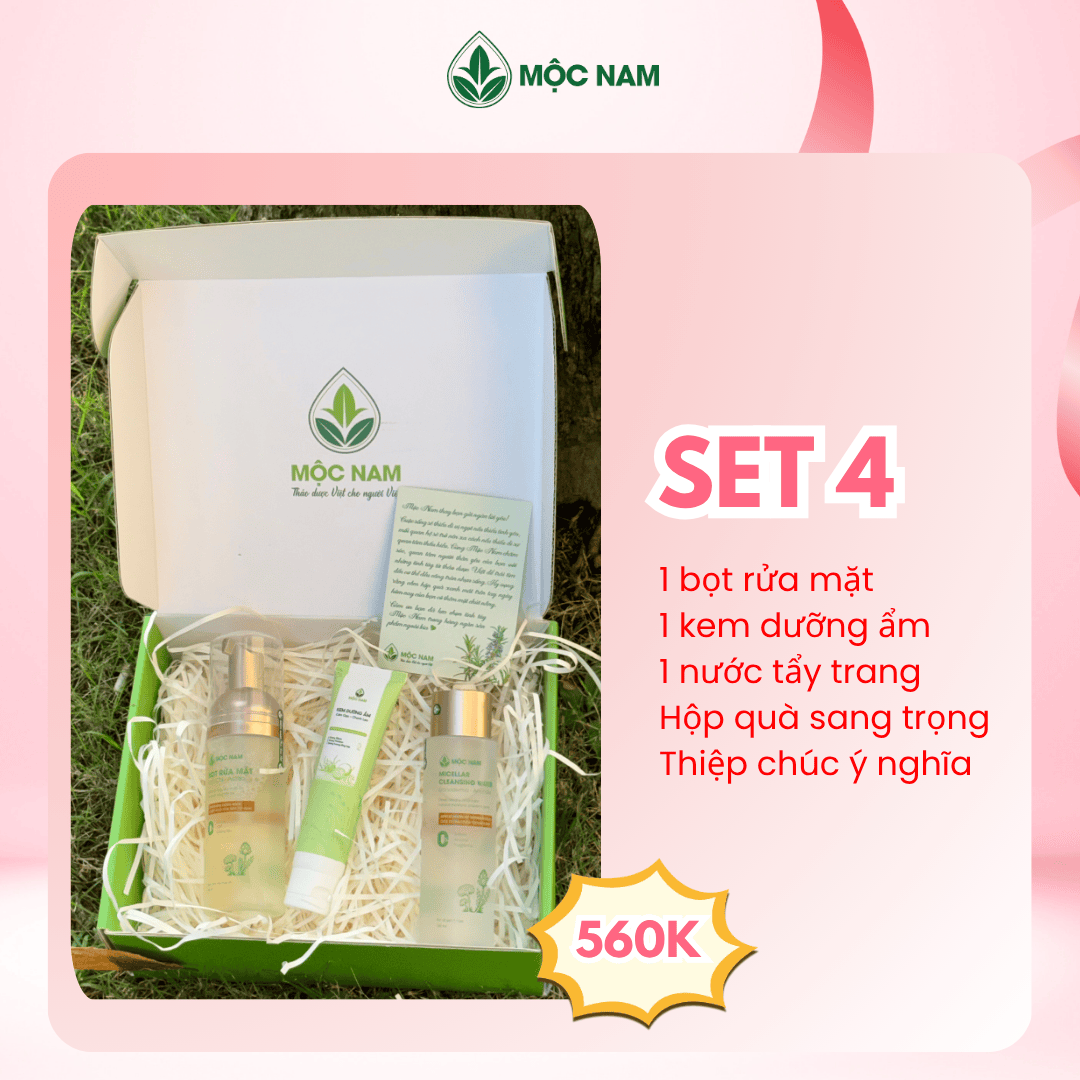 Set 4: bọt rửa mặt, kem dưỡng ẩm, nước tẩy trang