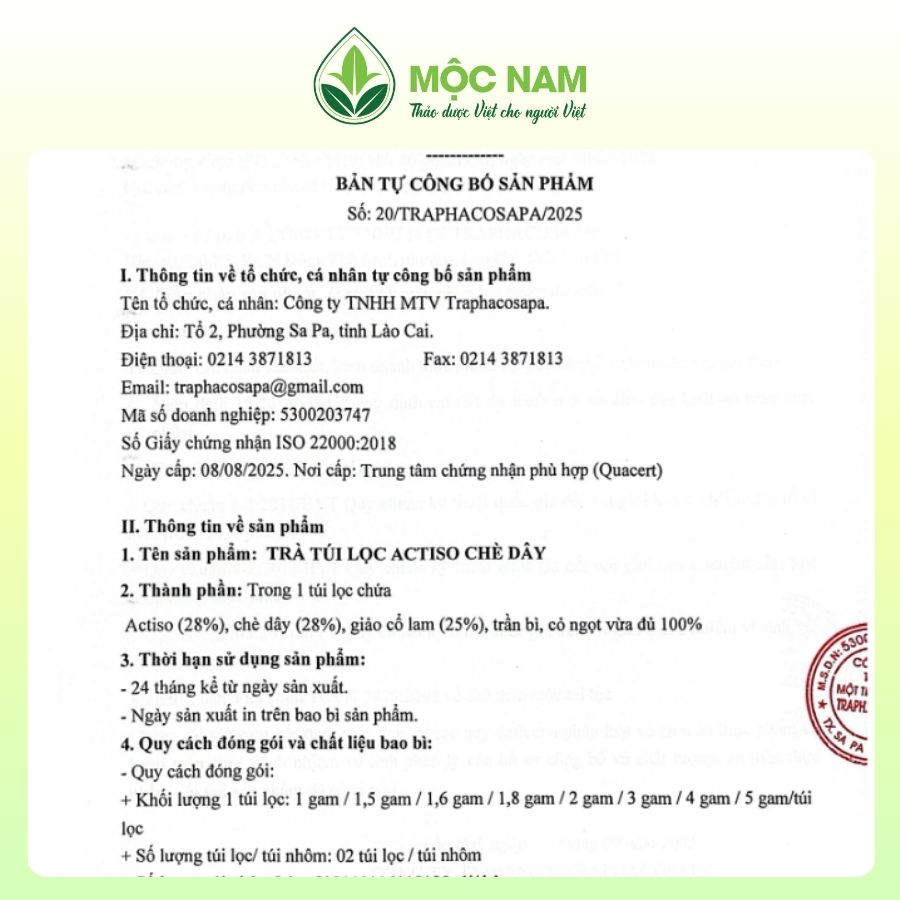 Ở vùng núi Sa Pa, những dây chè rừng vươn mình trong sương sớm, đón lấy từng giọt tinh khôi của đất trời. Khi hòa quyện cùng Actiso, vị trà thanh mát, nhẹ dịu lan tỏa, giúp xua tan mệt mỏi và dễ chịu sau mỗi bữa tiệc sum vầy. Trà Actiso – Chè Dây Mộc Nam là món quà sức khỏe an lành cho những ngày đầu năm mới.