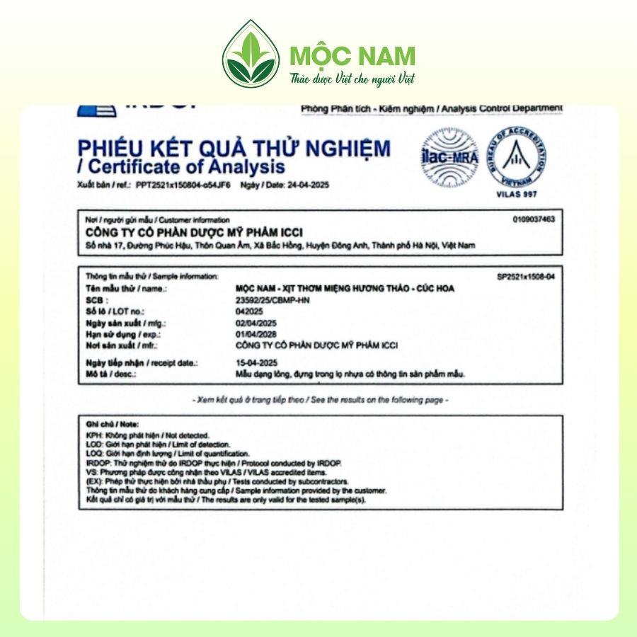 Với thành phần chính bao gồm hương thảo chiết CO2 siêu tới hạn cùng Cúc hoa và các loại thảo dược khác, xịt thơm miệng Mộc Nam giúp khử mùi ngay lập tức, dịu nhẹ, hạn chế vi khuẩn phát triển để bạn tự tin giao tiếp suốt cả ngày.